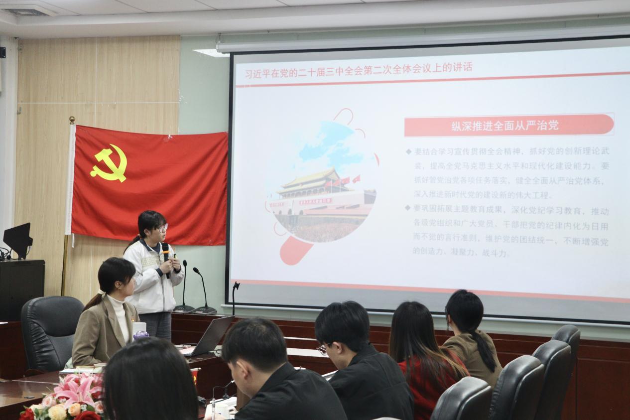 会议伊始,刘思仪领学学习贯彻党的二十届三中全会精神,她强调,党员同志要巩固拓展主题教育成果,深化党纪学习教育,从党章意识、忠诚意识、纪律意识、责任意识四个方面,自觉把中国共产党章程作为做人做事的根本遵循,自觉履行管党治党的政治责任,维护党的团结统一,不断增强党的创造力、凝聚力和战斗力。