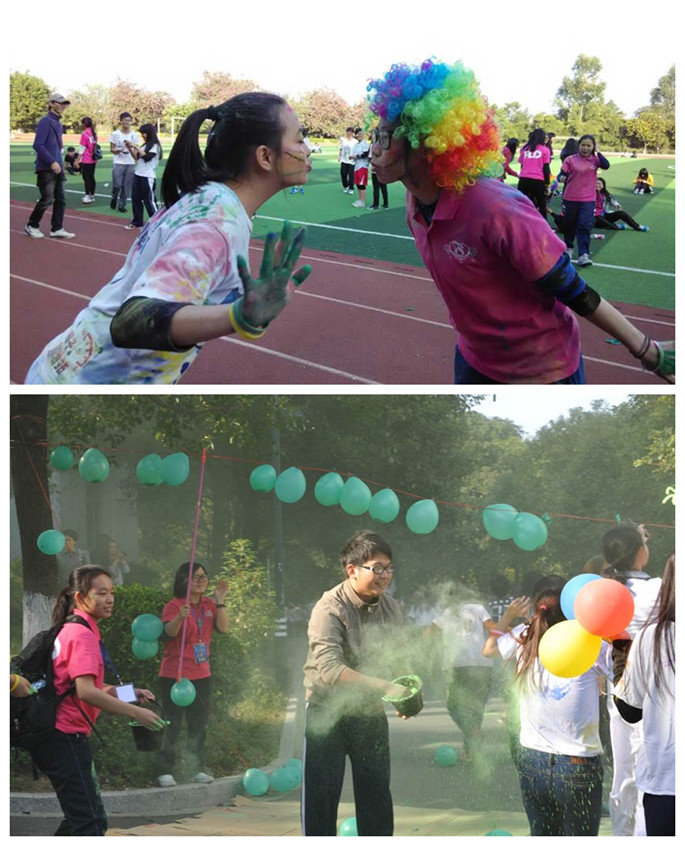 在庆祝学院十五周年之际,12月14日14:30外语系以缤纷、运动、健康的方式为母校送上真挚的生日祝福。外语系“彩色广商跑,悦跑越健康”为主题的彩跑在足球场正式开始。外语系党总支书记徐超、外语系团委书记刘万里、外语系团委副书记黄玉亭、院系学生代表和全院400位参与者积极参与了本次彩跑活动开跑仪式。
