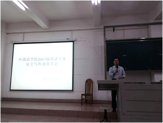 精品人妻无码于2016年11月7、8、9日分别举行2017届英语、日语和德语专业学生毕业论文动员大会,主管教学副院长袁鑫和各专业系主任参加动员大会。