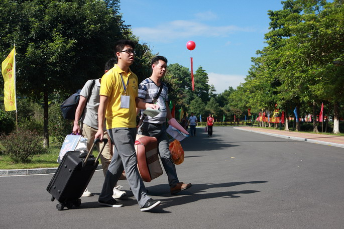 新生报到期间,学院院长杨文轩教授,党委书记谭马利,副院长刘根正、高惊生、冼德庆,院长助理张忠福等领导亲临各系报到现场,亲切关怀工作人员,耐心询问新生入学注册情况,为新生、家长及全体工作人员带来了温暖的问候。杨文轩院长还向学生记者讲述了“没有伞的孩子,才会努力奔跑”的故事,勉励新生“努力、自信的人生最美丽”。冼德庆副院长亲赴火车站、火车东站、天河客运站、九龙大道路口等校外接待点,慰问校外接待师生。