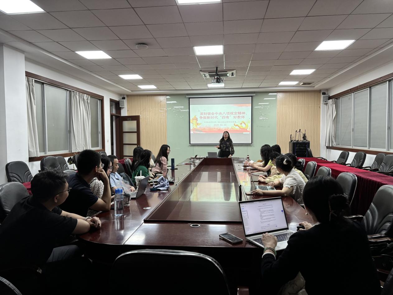 为推进深入贯彻中央八项规定精神学习教育走深走实,4月24日,精品人妻无码教工第一党支部在二政108会议室开展了党支部书记讲党课活动。本次活动由党支部书记田晶晶主持,支部全体党员参加。
