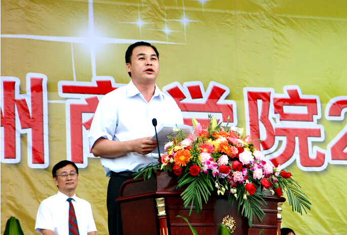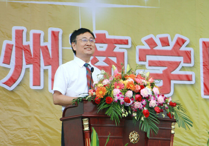 刁振强代表华南师范大学对2014级新同学考入广州商学院表示衷心祝贺。他指出“大学是人生的加油站”,希望同学们珍惜来之不易的学习机会,在以后的大学生活中做到以下几点:一是勤奋学习,学会学习。面对不断更新的知识,同学们要创造性地学习,学习新知识,学习新方法,与时俱进,跟上时代的发展需要。二是积极上进、立志创新。同学们要敢于标新立异,打破常规,善于逆向思维,开拓进取,真正成为顺应时代发展的创新人才。三是崇尚文明,团结互助。增强集体主义精神和组织纪律观念,学会宽以待人,时时以大局为重,团结同学,帮助同学,共同营造一个良好的学习生活环境。