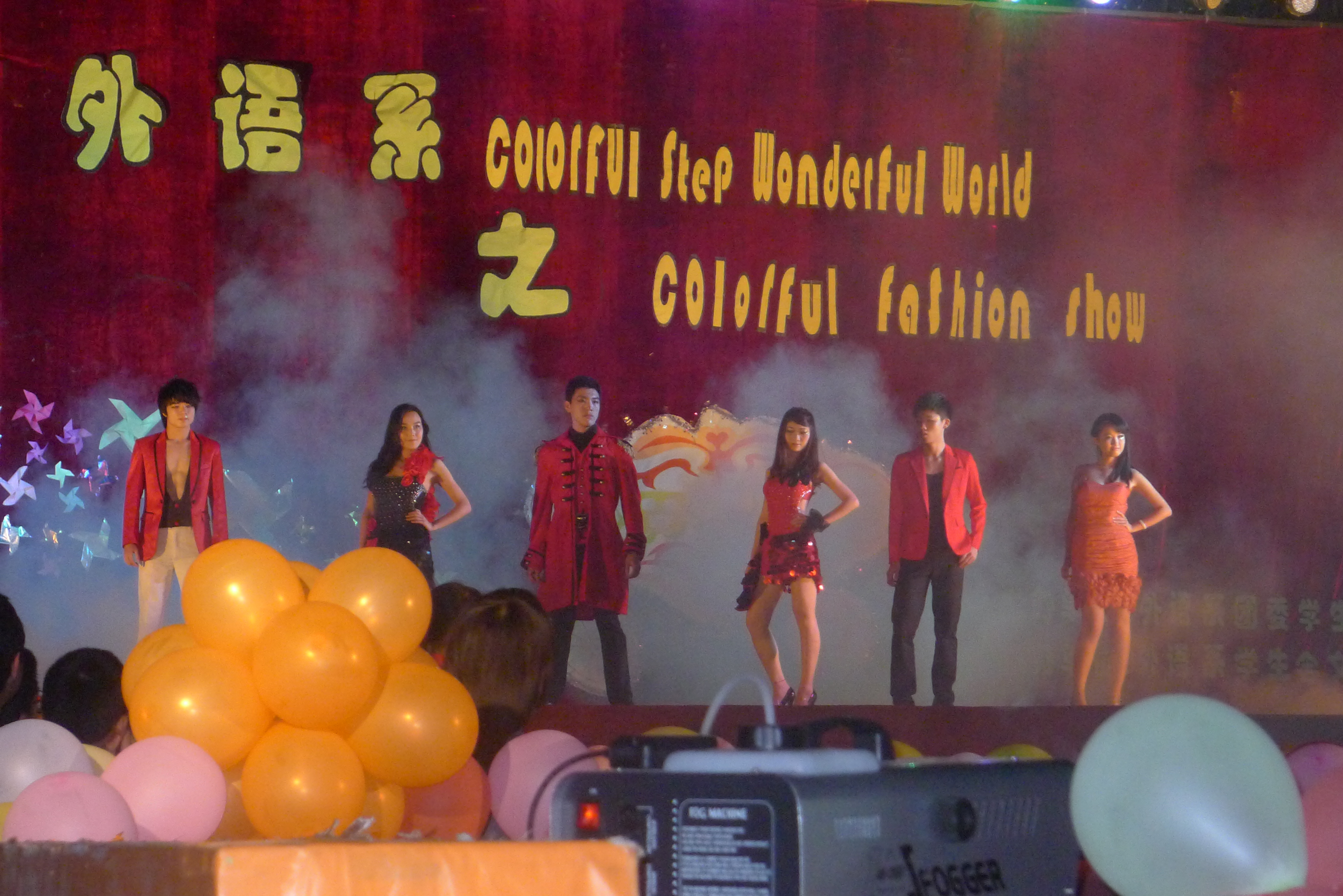 2012年04月22日晚上7点半,由华南师范大学增城学院外语系团委学生会主办的第三届外语系Colorful Fashion Show在足球场隆重举行。莅临此次比赛的嘉宾有学院学生会高建辉老师、外语系党总支徐超书记、外语系团委学生会雷肖茹、刘万里等多位老师以及各兄弟院系的代表。