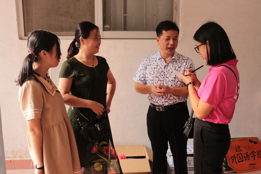 我院院长马蔚兰和党总支书记徐超分别亲临迎新现场,实地了解迎新工作的开展情况。马蔚兰和徐超走到外院迎新点和新生宿舍,慰问迎新现场工作的老师和学生干部,了解新生入学报到人数、报到工作进展等情况,鼓励迎新志愿者严谨细致要做好服务,让新生倍感家的温暖;与新生亲切交谈,了解他们的入学感受,与新生及家长亲切交谈,简要介绍学校的办学情况。