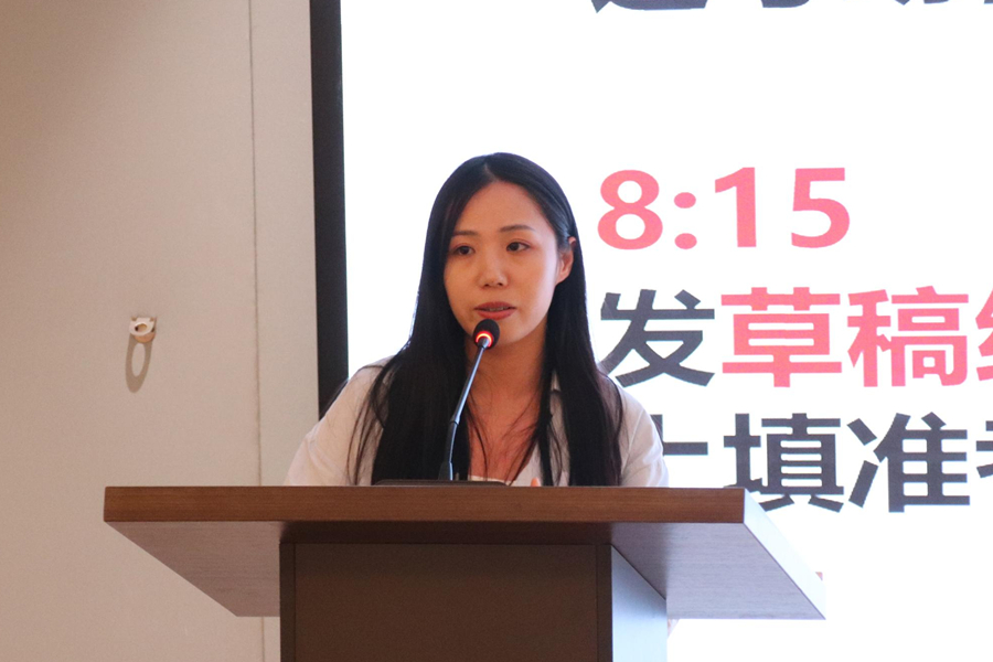 会议伊始,徐超作指导发言。他强调考级考证及学科竞赛的重要性,并进一步提出要加强我院学风的建设。徐超从英语专四考试的备战时间、复习资料的选择及做题时间等方面进行介绍,为备战英语专四考试的同学提供了明确的规划指引。