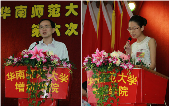 领导致辞(右起:学院团委副书记黄莉霞、外语系党总支书记徐超)