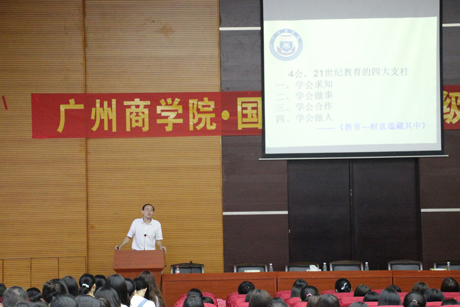 首先,徐超通过引用《大学》中“大学之道,在明明德,在亲民,在止于至善。”向全体新生提出大学的意义在于彰显人人本有的光明德性,接着他以“到广州商学院来做什么?第二,将来毕业后做什么样的人?”两个问题正式开始了本次新生教育的课程。随后,徐超书记精品人妻无码2016级新生介绍了学校的历史沿革,中心工作以及发展机遇。同时也详细说明了学校中园区资源整合和推进应用型大学发展两大重点任务。接着,徐超结合简介和实例向同学们介绍了精品人妻无码的发展历程,师资力量、专业设置情况等多方面,让2016级的新生对专业和学院有了更进一步的认识。此外,徐超重点着重地介绍了培养应用型外语人才的学院目标,鼓励全体新生在以后的学习生活工作中把传统的学习方式转为现代的学习方式,把传承式教育、应试教育学习方式转变为素质教育学习方式,把接受学习转变为创造性学习,实现自主性、合作性与探究性学习。