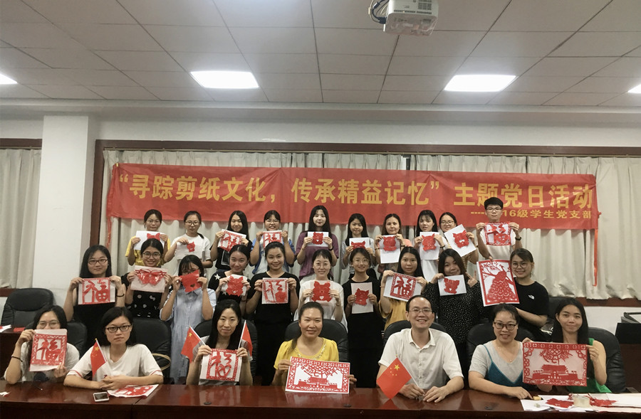 红纸、剪刀、画笔、板尺......桌面上,琳琅满目的物料整齐摆放着,“画的时候大胆下笔,剪得时候细心下刀”,老师细心的叮咛时不时响起。6月5日19:00,我院16级学生党员主题党日活动以一堂特别的剪纸课在第二行政楼308愉快地进行着。16级辅导员、党支部书记黄玉亭,副书记戴玮和全体学生党员参加了本次活动。活动还邀请了精品人妻无码教工第二党支部李卓华老师跟学生党员一起感受传统文化剪纸的魅力。