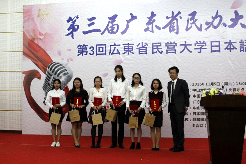 近日,由中国日语教学研究会华南分会和广东省民办本科高校日语教学研究联合会主办的第三届广东省民办大学日语演讲比赛在中山大学南方学院圆满落下帷幕。在王玉芝、邓亚晔、魏玉崑老师的指导下,我院两位选手表现优异, 2015级日语专业的张小思同学荣获三等奖,2013级日语专业的戴臻同学荣获优秀奖。