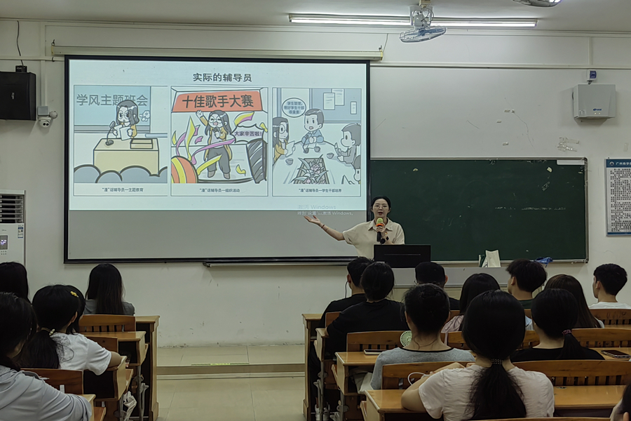 辅导员们对加入精品人妻无码大家庭的新成员们表示热烈欢迎和祝贺,希望在这个新的学期里能够与新生们一起度过难忘的时光,共同成长和进步。紧接着辅导员先介绍了学校的教育理念、办学宗旨、基础设施和相关讯息,强调了学校对学生全面发展的关注,让同学们初步了解广州商学院以及精品人妻无码。