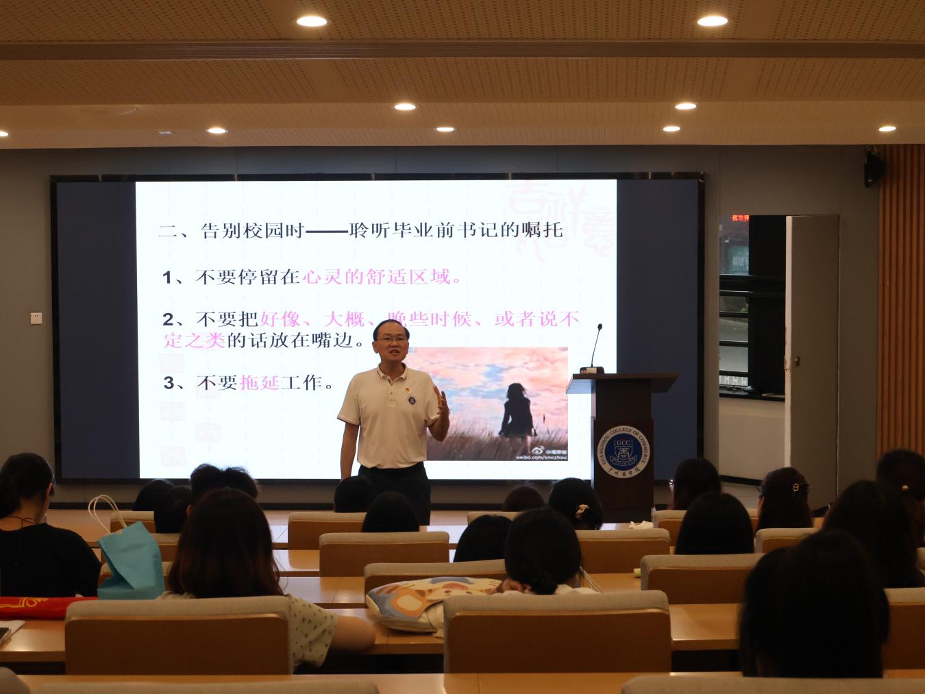 “告别校园时”环节中,徐超书记以九条嘱托寄语毕业生党员:不要停留在舒适区、不拖延工作、不忽视细节、不推卸责任……每一句话都饱含期待与责任,激励大家在今后的工作中脚踏实地、勇于担当、追求卓越。