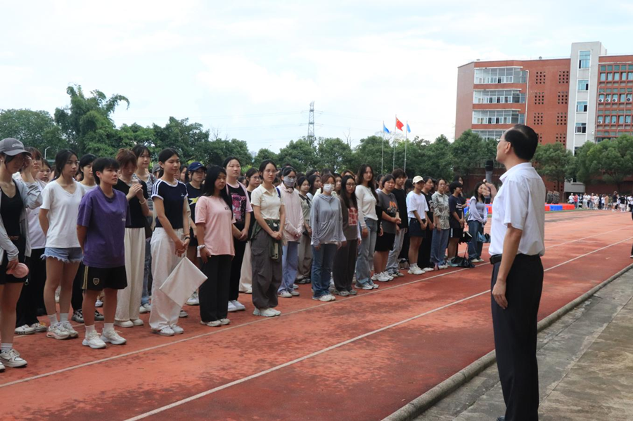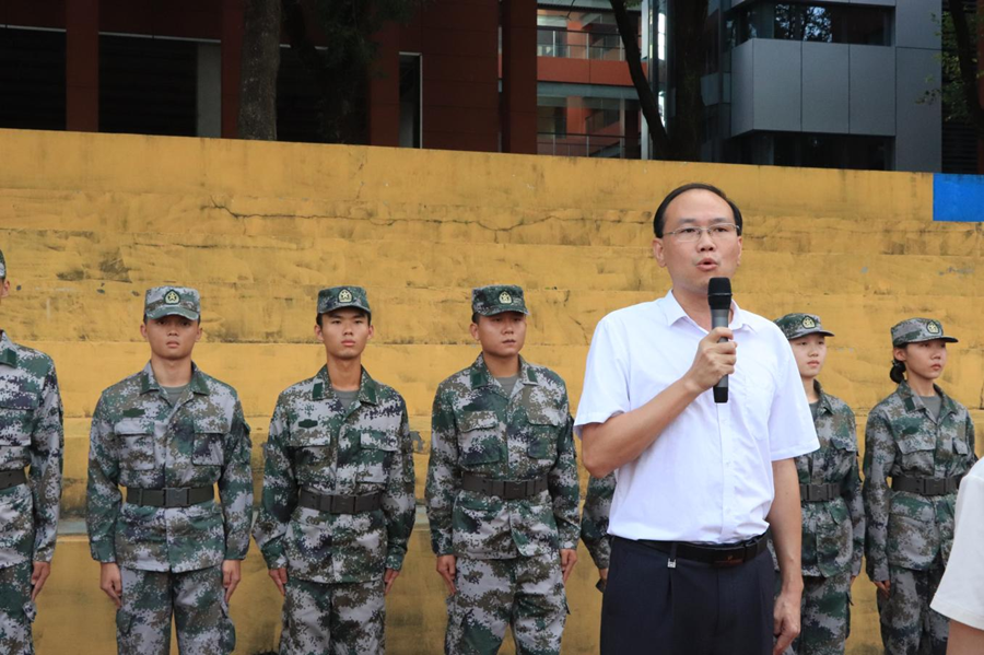 紧接着,三营营长钟教官向新生们详细介绍了军训期间的各项要求。他表示,军训是大学生来到大学校园,适应新环境、接受新挑战的重要一课。同时他希望,在未来的14天里,以实际行动完成好训练任务,以崭新的精神面貌去迎接未来的学习和生活。
