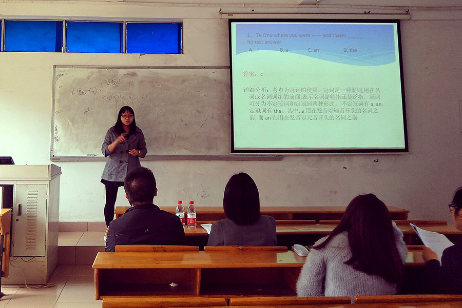 本次招聘主要以招聘高中英语老师、数学老师为主。参加招聘毕业生根据企业分配的试讲材料备课,并一一上台试讲。试讲的内容包括英语词法、句法、阅读理解和课程讲解。毕业生充分准备,充分发挥各项师范技能技巧,15分钟面试中,试讲内容思路清晰、讲解得头头是道。部分同学充分发挥了多媒体的辅助作用,通过PPT来展示试讲内容;部分同学们充分展示了板书字迹工整的优点,赢得了企业面试官的青睐。近三个小时,15位同学一一展示完毕。其中,毕业生冯飞凤认为:本次面试结合笔试和试讲,笔试重点考察是专业知识的扎实程度,试讲则考查英语口语能力、师范技能运用和课堂管理能力,因为是非师范专业毕业生,对于师范技能没有系统的学习,所以本次的面试也给我们带来了一定的挑战。面试结束后,企业负责人廖宣旺表示,参加面试的毕业生面试准备充分,态度严谨。专业知识扎实,师范技能灵活性强,面试结果令人满意。