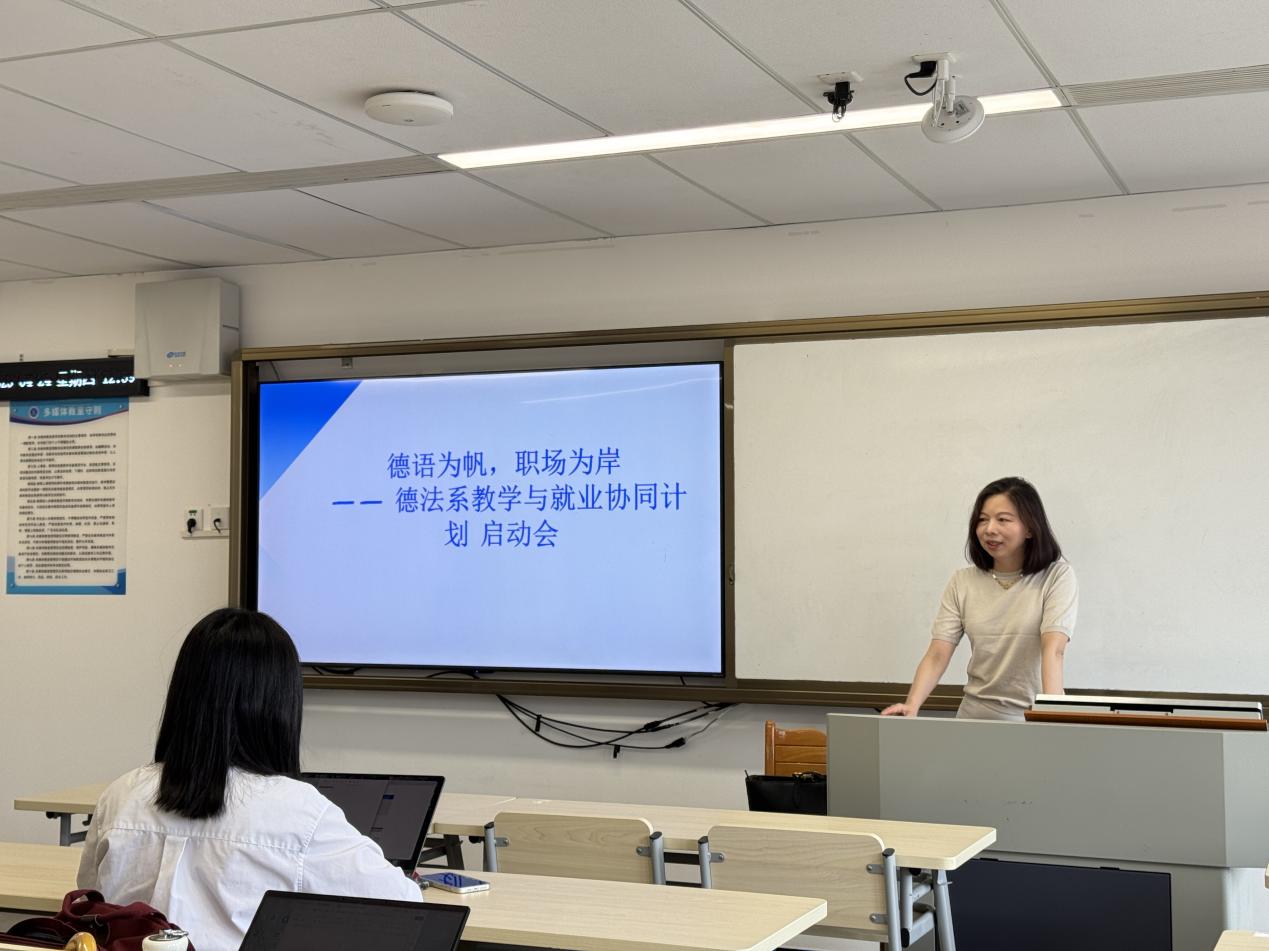 此外,会议特别强调了动员大四学生就业的重要性。全体教师需积极关注大四学生的就业动态,为他们提供个性化的就业指导和服务。经研讨,老师们一致认为,可通过举办就业讲座、组织企业参观、开展简历制作培训等多样化活动,全方位提升学生的就业准备能力。同时,德法系将凝聚集体力量,深化与企业的交流合作,搭建更广阔的平台,为学生争取更多优质的实习与就业资源 。德语为帆,职场为岸。德法系将继续秉持这一理念,不断探索教学与就业协同的新路径,为学生搭建从校园到职场的直通车,让每一位德法系学生都能乘风破浪,扬帆远航!
