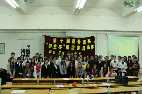 经过一个多小时的激烈角逐,外语系第十四届“新生杯”辩论赛总决赛徐徐落下了帷幕。最后决赛桂冠则由反方的德语A班队伍摘下,正方的英语F班摘得亚军;此外,正方四辩林翔翔和反方二辩黄伊琳凭借在辩论场上敏捷的思维和犀利的语言,赢得评委一致青睐,荣获“优秀辩手”称号。