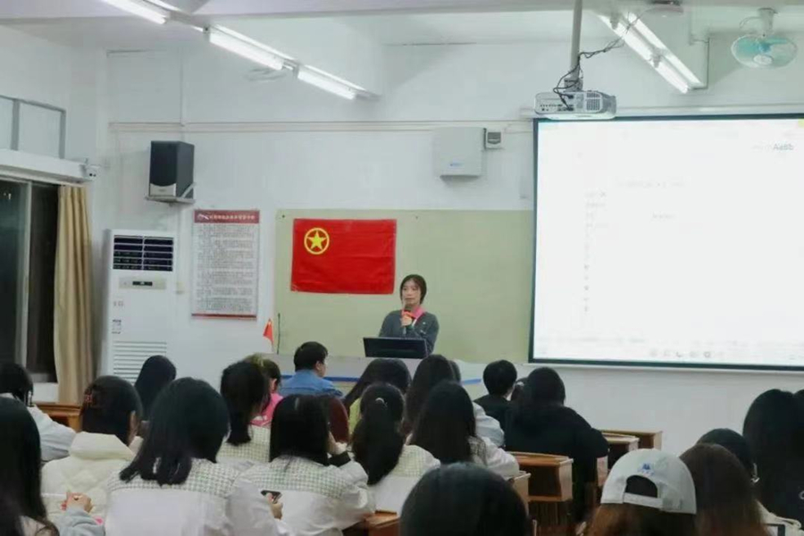 徐麒徵针对主题团日活动进行详细讲解,介绍开展活动的流程。她指出开展主题团日活动时,要注重其教育性、实践性、创新性、特色性。结合学院专业特色,以“室内+室外”的开展模式让团日活动更加“独特”,并提醒各组织委员要提高标准,在团日活动中注意规范化使用团徽和团旗。
