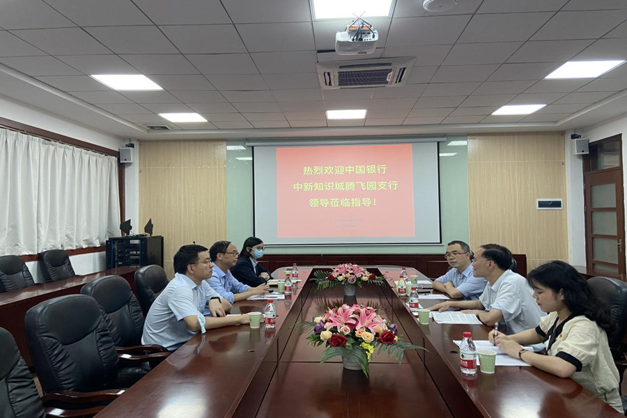 徐超对中国银行广州开发区分行和广州中新知识城腾飞园支行的到来表示热烈欢迎,并详细介绍了我院的办学情况和党建工作情况,并提出与中国银行中新知识城腾飞园支行开展党团共建、志愿服务、人才交流等方面的合作意愿。 钟多亮主任对我院办学成果、党建工作等给予了高度赞誉,并详细介绍了中国银行广州开发区分行的基本情况和党建工作开展情况,就党建结对共建、人才交流进行了深入广泛的讨论交流。钟多亮表示,希望通过开展党建结对共建活动,实现基层党组织工作互动和资源共享,优势互补,探索更多党建活动的新路子。
