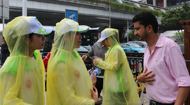 抵达琶洲会馆集合地点,海珠区青年志愿服务协会工作人员对志愿者们再次进行了岗前现场培训,以便于更好开展志愿服务活动。80名志愿者分成了四个小队,志愿者们在各自队长的带领下,前往不同的场馆区域开展服务活动,主要是为来参展的中外客商指引通往各场馆的道路、指引办证、乘坐交通工具的地点和秩序维持等。在志愿服务期间,志愿者们始终耐心地为中外客商答疑解惑。即使在服务过程中细雨绵绵,志愿者们也依旧坚守着自己的岗位,为商客提供准确有效的优质服务。