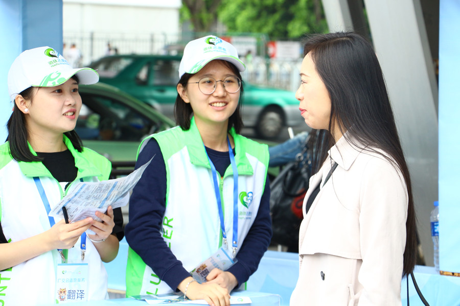 到达琶洲集合点后,志愿者们就服务场地先进行了解。海珠区青年志愿服务协会工作人员对志愿者们进行了岗前培训。在小队领队的带领下,40名志愿者分成两小队,前往不同的场馆区域开展服务活动,主要为来粤参展的中外客商提供交通指引、场馆导向、秩序维持等服务。志愿服务期间,我院志愿者以专业的技能、敬业的态度、灿烂的微笑和优质的服务一一为中外客商答疑解惑。