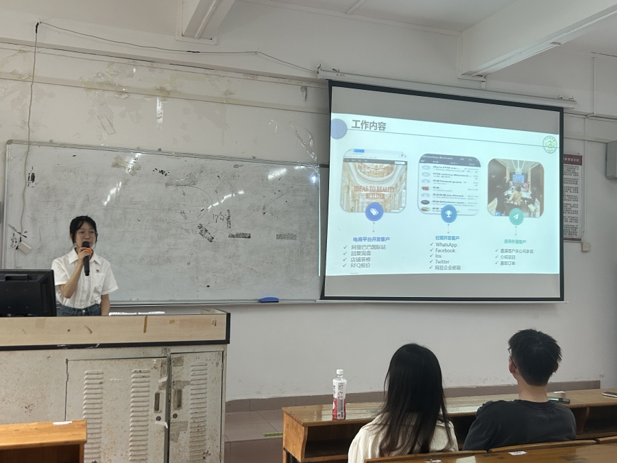 张银清就职于广州一外贸公司任外贸业务员,她从工作日常及个人经验两个方面展开分享。她先用一段视频向同学们分享了自己的工作日常,引起同学们的兴趣。她指出,同学们在就职前需要有明确的职位认知,对于外贸业务员而言,主要在于外语能力、信息交流能力、专业知识能力,而作为精品人妻无码的学生,这些能力在日常课程学习中都能有所锻炼,需要大家在课程中好好学习,发散拓展。