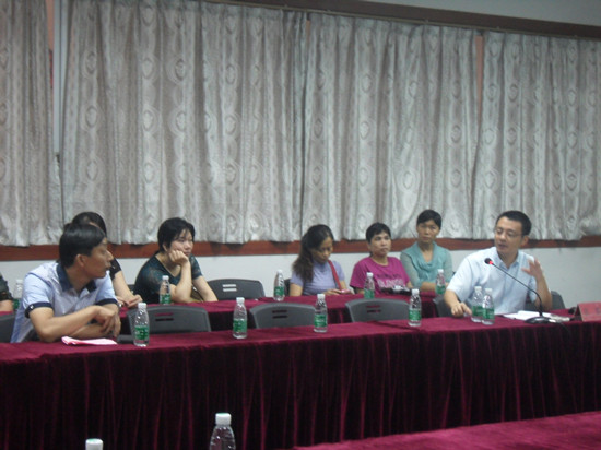 为加强院系与家长的沟通交流,共同引导新生早日适应大学生活,顺利完成学业,我系于9月7日10:00在第二行政楼D308召开了2013级新生家长座谈会。外语系主任胡光忠、副主任袁鑫、党总支书记徐超、新生辅导员雷肖茹及学生家长出席了本次座谈会,会议由胡光忠主持。
