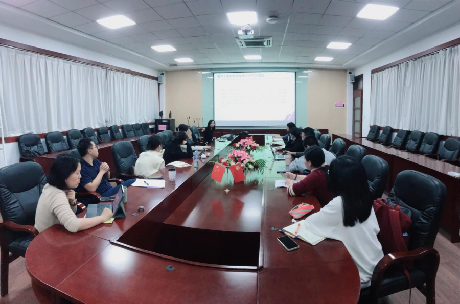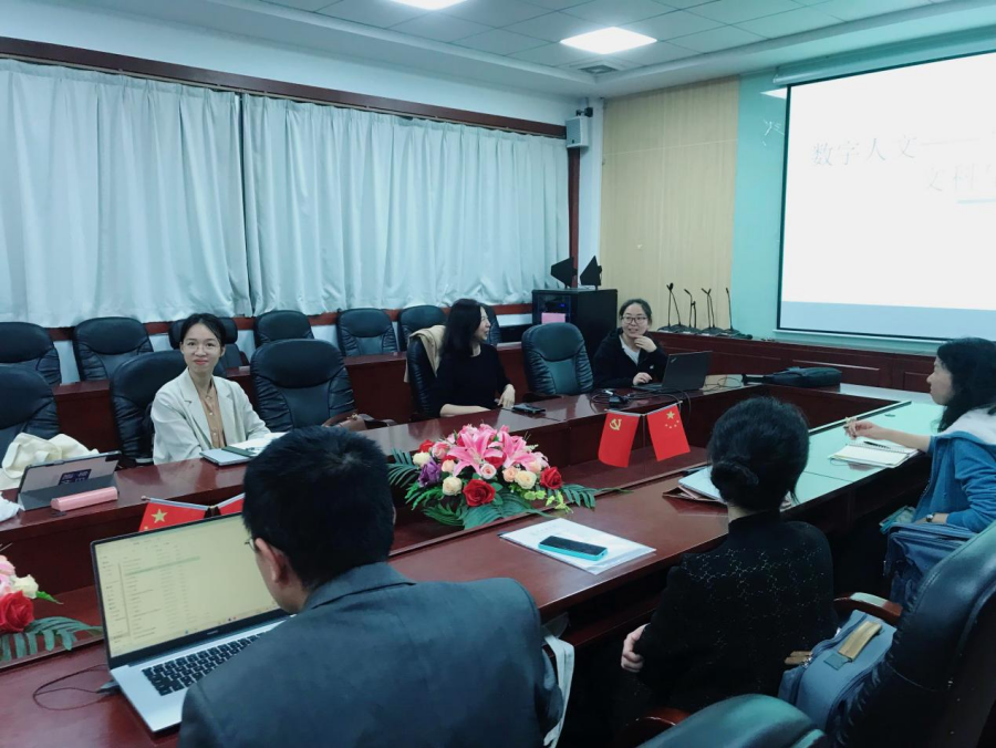 随后,章睿霖老师针对数字人文这一交叉学科进行了报告。她详细介绍了数字人文专业的发展阶段和在德国的发展模式。此外,她还强调了数字人文专业在促进文化资源的开放共享、助力集体记忆的书写建构、推动国家话语的塑造传播等方面的重要作用。章老师还表示,对于语言类学生而言,数字人文专业可以弥补文科生欠缺的部分能力,让学生未来能够更从容地踏入社会,将大学知识应用于实际工作中。接下来,在座教师这对“数字人文”在我院德语专业中的应用可能性和前景展开讨论。