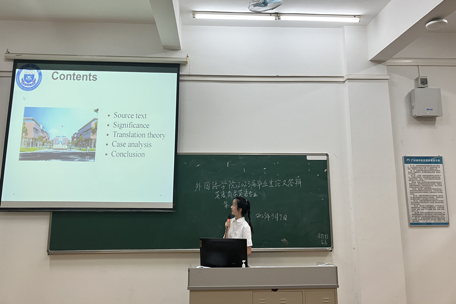 参加本次论文答辩共设34个答辩小组,四个专业都设有一个设有优秀毕业论文答辩组。整个答辩过程答辩老师和学生均采取外文进行。首先由学生全部以PPT演示的方式介绍论文结构,阐述主要观点。答辩老师们就选题思路、论文结构分析等方面进行了提问,同时对同学们的论文进行了点评,进一步完善修改的意见和建议。最后,每组三位答辩老师对毕业论文成绩进行了评定。
