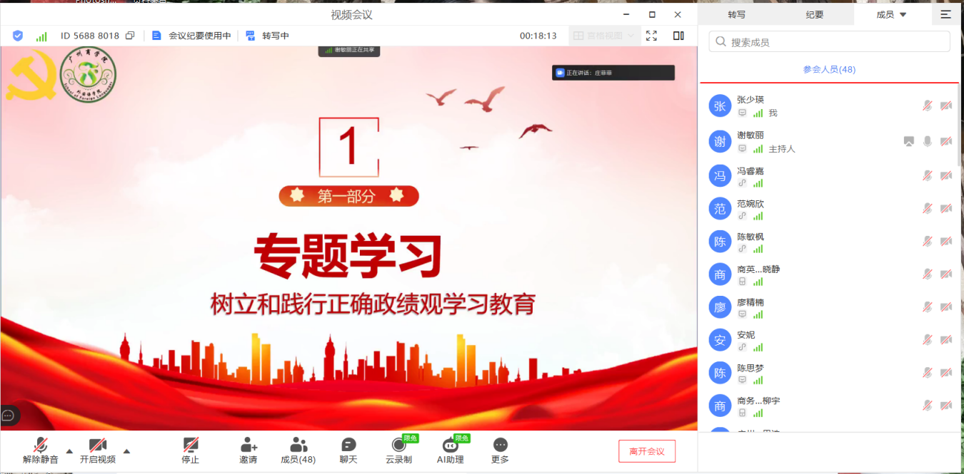 会议严格落实第一议题制度,围绕“树立和践行正确政绩观”开展专题学习教育。谢敏丽领学习近平总书记关于政绩观教育的重要指示精神,深入解读正确政绩观的核心要义,强调政绩观是党员世界观、人生观、价值观在履职尽责中的具体体现,青年党员要从入党之初扣好廉洁自律、实干担当的“第一粒扣子”,坚决抵制“形象工程”“政绩工程”等不良倾向。专题学习进一步筑牢了支部党员的思想根基,增强了党性修养和政治自觉,明确了立足岗位实干笃行的前进方向。