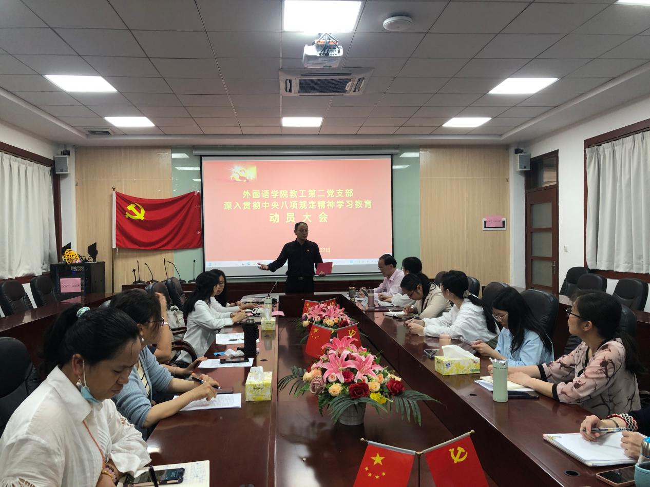 3月27日,精品人妻无码教工第二党支部在第二行政楼308会议室召开深入贯彻中央八项规定精神学习教育动员会,会议由支部书记唐海民主持,全体党员参加。