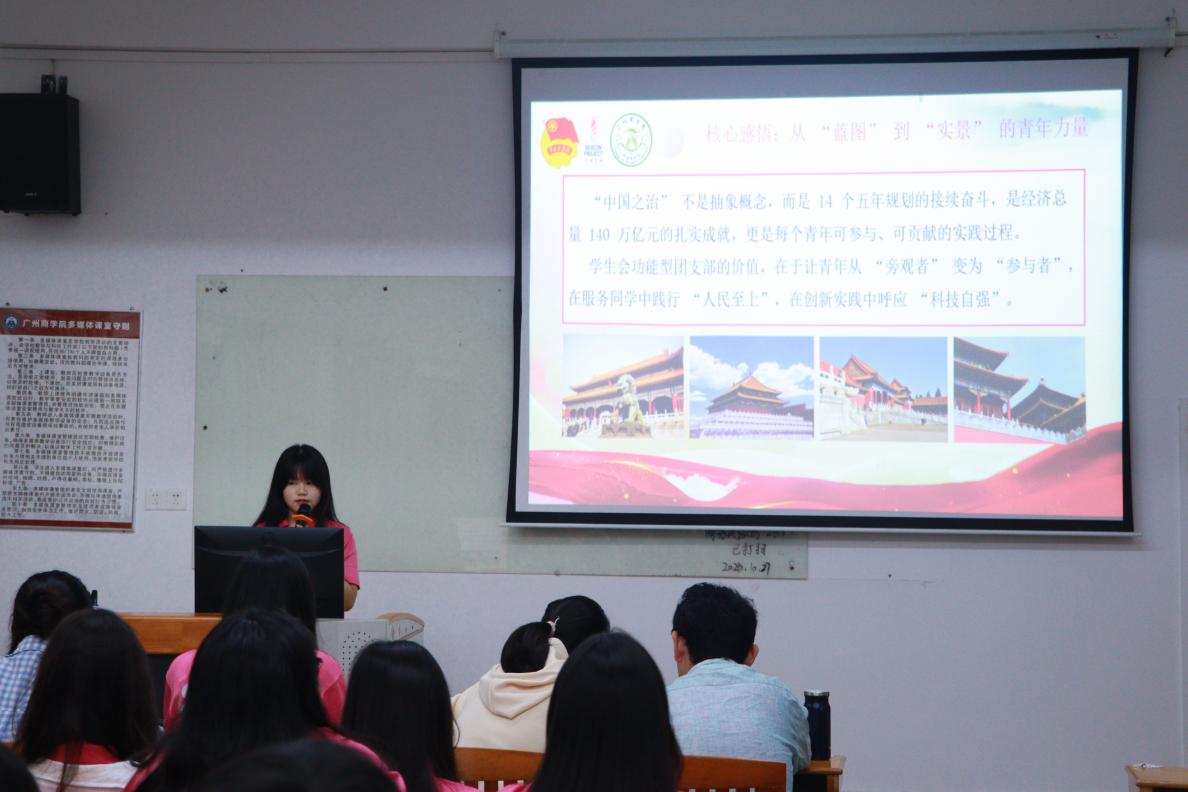 会上,李梦娇进一步明确实践路径,要求全体成员从理论学习转向实际行动,主动参与校园治理与国家发展实践。她指出,要将“中国之治”的宏伟蓝图化为具体举措:通过开展校园环保创新挑战赛、搭建宿舍优化诉求反馈通道等“三型”团支部建设,推动学生会成员从理论学习的“旁观者”转变为校园治理的“参与者”;利用外语优势参与“一带一路”相关志愿服务,切实把制度优势转化为服务实效。